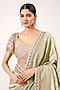Featuring a sea green banarasi saree in brocade base with crystals and sequins hand embroidery. It is paired with an embroidered blouse. Style it with kundan polki or pearl jewellery, embellished heels and a potli bag for a bridal look, Perfect wear for your wedding or engagement ceremony.