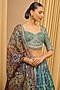 Teal & Multi-Colored Kasab Satin Printed Lehenga Set