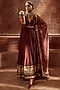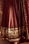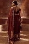 Featuring a wine anarkali in spun silk tussar base with gota, aari and hand embroidery. It is paired with matching churidar pants in stretch net base and a brocade dupatta.