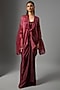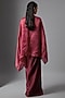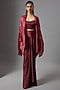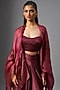 Featuring a wine draped kaftan top in organza base. It is paired with a bustier and a satin skirt. Accentuate it with statement earrings and heels for an evening look or cocktail soirees.