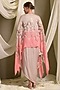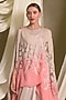 Featuring a beige and pink dress in satin base. It is paired with an organza cape having buttons detail. Accentuate it with minimal jewellery and heels for a complete look.