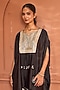 Featuring a black kaftan top in satin silk base. It is paired with pants. Accentuate it with statement jewellery and heels for festive ceremonies.