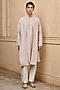 Featuring a beige kurta in viscose and polyester base with embroidery. It is paired with pants and a dupatta. Style it with pair of loafers and a bracelet for festive parties or sangeet ceremony.