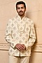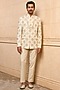 Featuring a beige bandhgala in viscose base with embroidery and a structured silhouette. It is paired with pants. Style it with pair of loafers and a bracelet for festive celebrations or sangeet ceremony.