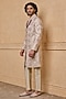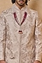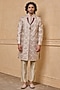Featuring a cream sherwani in viscose blend base. It is paired with a kurta and aligarhi pants. Style it with a pair of mojaris, safa and malas for a wedding or engagement ceremony.