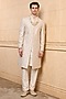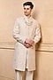 Gold Polyester Viscose Blend Embroidered Sherwani Set