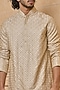Featuring a gold kurta in viscose and polyester base with embroidery. It is paired with pants. Style it with a heritage brooch and loafers, perfect for festive, sangeet or an engagement ceremony, rooted in tradition and elegance.