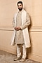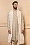 Featuring a gold sherwani in viscose and polyester base with embroidery. It is paired with a kurta, pants and a stole. Accentuate it with pair of mojaris, a safa and a mala for a traditional look, Perfect wear for your wedding or engagement ceremony.