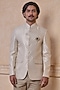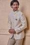 Featuring an ivory bandhgala in polyester, viscose and metallic base. Perfect for any wedding or engagement ceremony, exuding charm and elegance.