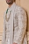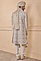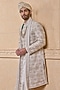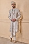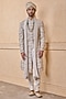Featuring an ivory sherwani in viscose blend base. It is paired with a kurta, churidar and a stole. Style it with a pair of mojaris, safa and malas for a wedding or engagement ceremony.