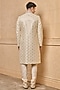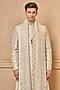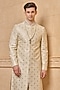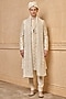 Featuring an ivory sherwani in viscose blend base. It is paired with a kurta and churidar. Style it with a pair of mojaris, safa and malas for a wedding or engagement ceremony.