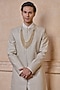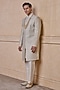Featuring an ivory sherwani in viscose blend base. It is paired with a kurta and aligarhi pants. Style it with a pair of mojaris, safa and malas for a wedding or engagement ceremony.