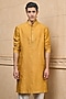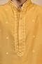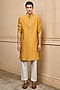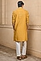 Featuring an ochre yellow kurta in polyester and viscose base with embroidery. It is paired with pants. Style it with pair of kolhapuris and a bracelet for festive gatherings or haldi ceremony.