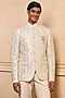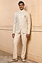 Featuring an off-white bandhgala in viscose base with a structured silhouette. It is paired with pants. Style it with pair of loafers and a bracelet for festive celebrations or sangeet ceremony.