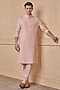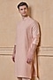 Featuring a peach kurta in viscose and polyester base with texture detailing. It is paired with pants. Style it with a heritage brooch and loafers, perfect for festive, sangeet or an engagement ceremony, rooted in tradition and elegance.