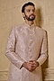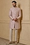Featuring a pink achkan jacket in silk base with resham embroidery. It is paired with pants. Ideal attire for a festive occasion.