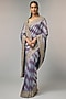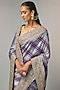 Featuring a blue saree in banarasi base. It is paired with an unstitched blouse. Accentuate it with polki jewellery and block heels for festive occasions or pooja ceremony.