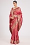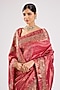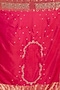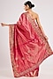 Featuring a deep pink saree in kanjivaram silk base. It is paired with an unstitched blouse. Accentuate it with polki jewellery and block heels for a festive look, sangeet or wedding ceremonies.