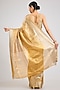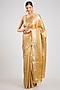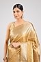 Featuring a gold saree in kanjeevaram silk base. It is paired with an unstitched blouse piece. Style it with statement gold jewellery, sleek heels, and a neat bun for weddings, receptions, festive celebrations, and elegant evening occasions.