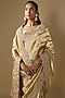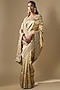 Featuring a gold saree in tissue base. It is paired with an unstitched blouse. Style it with statement jewellery, potli and heels for a festive occasion, reception, wedding or engagement ceremony.