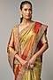 Featuring a golden saree in kanjivaram base. It is paired with an unstitched blouse. Accentuate it with polki jewellery and block heels for festive occasions or pooja ceremony.