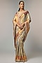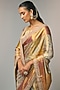 Featuring a golden saree in kanjivaram base. It is paired with an unstitched blouse. Accentuate it with polki jewellery and block heels for festive occasions or pooja ceremony.