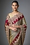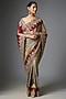 Featuring a grey saree in kanjivaram base. It is paired with an unstitched blouse. Accentuate it with polki jewellery and block heels for a festive look, engagement or wedding ceremonies.