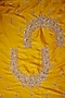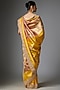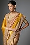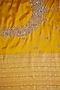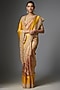 Featuring a mustard saree in kanjivaram base. It is paired with an unstitched blouse. Accentuate it with polki jewellery and block heels for a festive look, haldi, engagement or wedding ceremonies.
