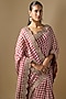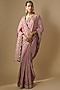 Featuring a pink saree in tissue base. It is paired with an unstitched blouse. Style it with statement jewellery, potli and heels for a festive occasion, reception, wedding or engagement ceremony.