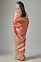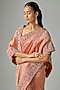 Featuring a red saree in brocade base. It is paired with an unstitched blouse piece. Style it with statement gold jewellery, sleek heels, and a neat bun for weddings, receptions, festive celebrations, and elegant evening occasions.