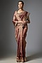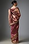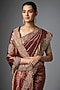 Featuring a wine saree in kanjivaram base. It is paired with an unstitched blouse. Accentuate it with polki jewellery and block heels for a festive look, engagement or wedding ceremonies.