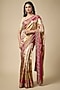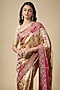 Featuring a gold saree in kanjivaram base with zardosi work. It is paired with an unstitched blouse. Accentuate it with statement jewellery and heels for a festive occasion, wedding, sangeet or engagement ceremony.