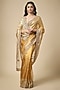 Featuring a gold saree in kanjivaram base with zardosi work. It is paired with an unstitched blouse. Accentuate it with statement jewellery and heels for a festive occasion, wedding, sangeet or engagement ceremony.