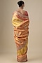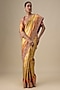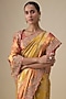 Featuring a gold kanjivaram saree in silk base with zardosi work. Elevate your festive look with this saree, styled with statement earrings and heels.