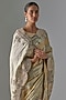 Featuring a gold and silver saree in kanjivaram base with zardosi handwork. It is paired with an unstitched blouse. Accentuate with statement earrings and heels for a festive occasion.