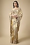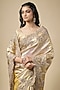 Featuring a gold saree in tissue base with zardosi work. It is paired with an unstitched blouse. Accentuate it with statement jewellery and heels for a festive occasion, wedding, sangeet or engagement ceremony.
