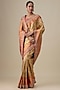 Featuring a peach kanjivaram saree in silk base with hand work. Elevate your festive look with this saree, styled with statement earrings and heels.