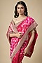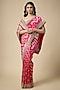 Featuring a pink saree in banarasi base with zardosi work. It is paired with an unstitched blouse. Accentuate it with statement jewellery and heels for a festive occasion, wedding, sangeet or engagement ceremony.