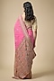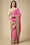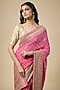 Featuring a pink saree in bandhani base with zardosi work. It is paired with an unstitched blouse. Accentuate it with statement jewellery and heels for a festive occasion, wedding, sangeet or engagement ceremony.