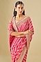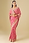 Featuring a pink bandhej saree in georgette base with zardosi work. Elevate your festive look with this saree, styled with statement earrings and heels.