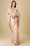 Featuring a pink saree in kanjivaram tissue base with zardosi work. It is paired with an unstitched blouse. Accentuate it with statement earrings and block heels for a festive occasion or wedding ceremony.