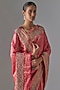 Featuring a pink saree in kanjivaram base with zardosi handwork. It is paired with an unstitched blouse. Accentuate with statement earrings and heels for a festive occasion.