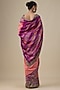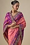 Featuring a pink ikat saree in silk base with zardosi work. Elevate your festive look with this saree, styled with statement earrings and heels.