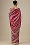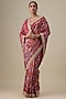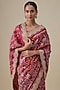 Featuring a pink ikat saree in silk base with zardosi work. Elevate your festive look with this saree, styled with statement earrings and heels.