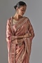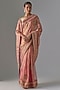 Featuring a pink saree in tissue base with zardosi handwork. It is paired with an unstitched blouse. Accentuate with statement earrings and heels for a festive occasion.