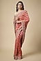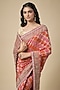 Featuring a red saree in bandhani base with zardosi work. It is paired with an unstitched blouse. Accentuate it with statement jewellery and heels for a festive occasion, wedding, sangeet or engagement ceremony.