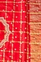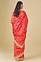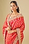 Featuring a red ikat saree in silk base with zardosi work. Elevate your festive look with this saree, styled with statement earrings and heels.