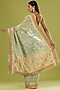 Featuring a sea green woven saree in banarasi tissue base with zardosi handwork and an attached unstitched blouse piece. This contains only one piece.
