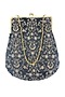 Featuring a blue purse in poly net base with brass frame and gold sequins embroidery. It has a poly satin underlining.