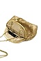 Featuring a golden potli purse in poly net base with brass frame and gold sequins embroidery. It has a poly satin underlining.